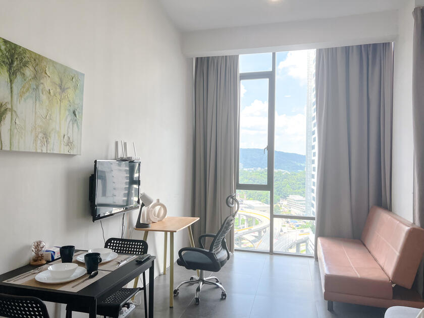 The new & modern designer place to stay perfectly for young couples, small families, working adults & small gatherings with the direct view of Merdeka 118, Stadium Merdeka, Petronas Twin Towers & KL Tower.
