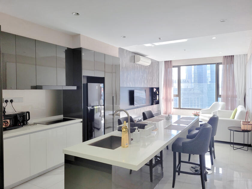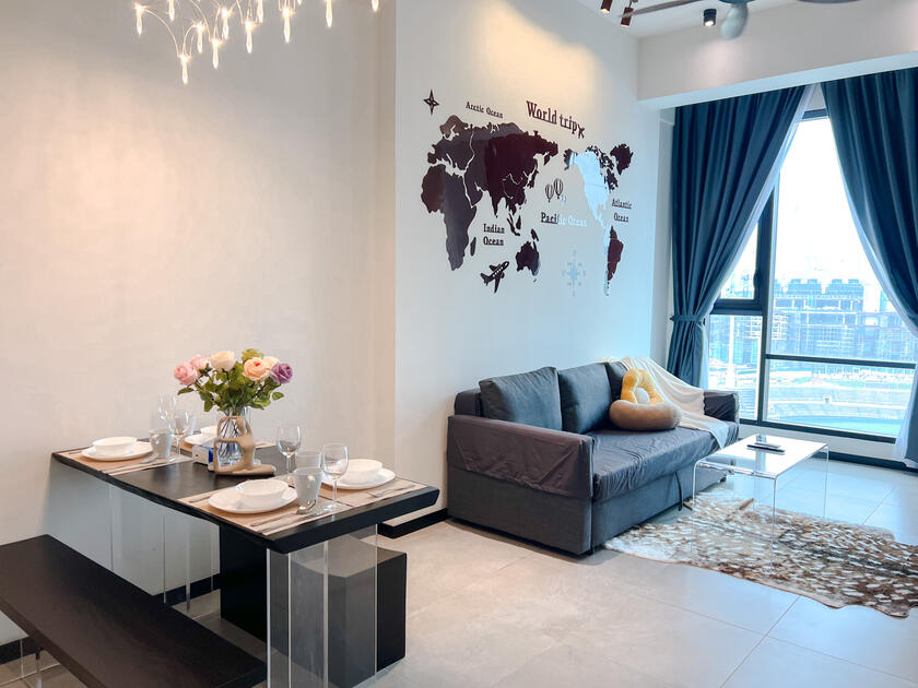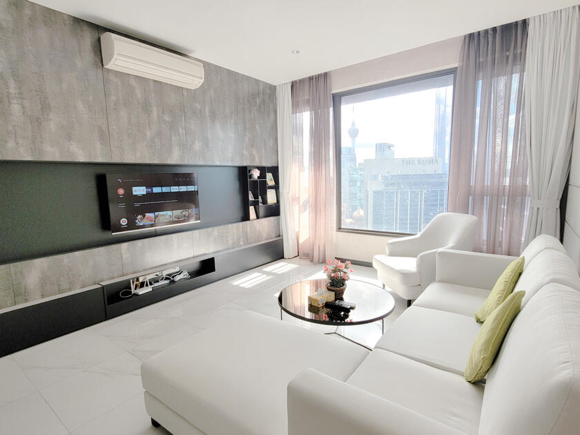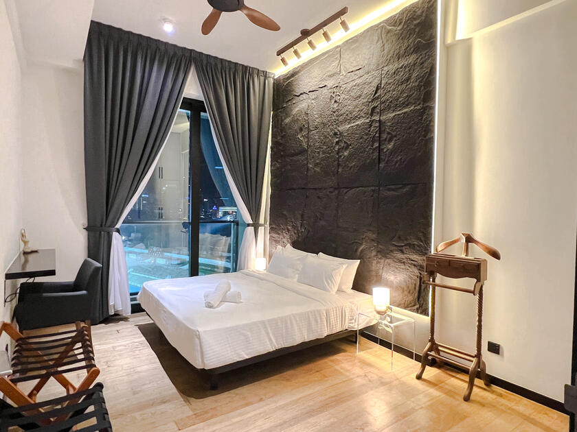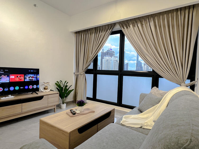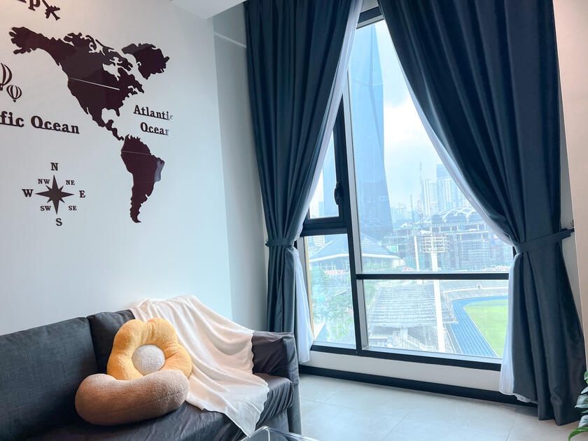The new & modern designer place to stay perfectly for young couples, small families, working adults & small gatherings with the direct view of Merdeka 118, Stadium Merdeka, Petronas Twin Towers & KL Tower.