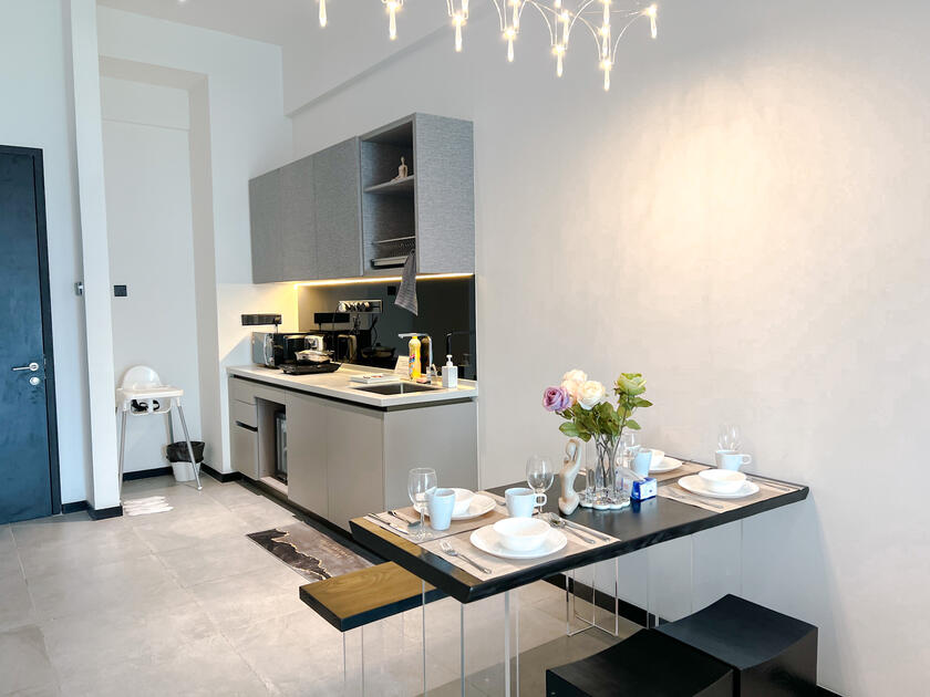 With a minimalist design & spacious room, this studio suite is well suited for work, leisure & gathering.